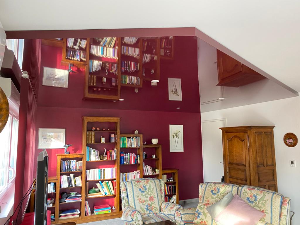 Ils cherchaient une solution pour avoir une meilleure lumière et surtout placée au bon endroit dans leur salon. Pour cela aussi le plafond tendu est une excellente solution.