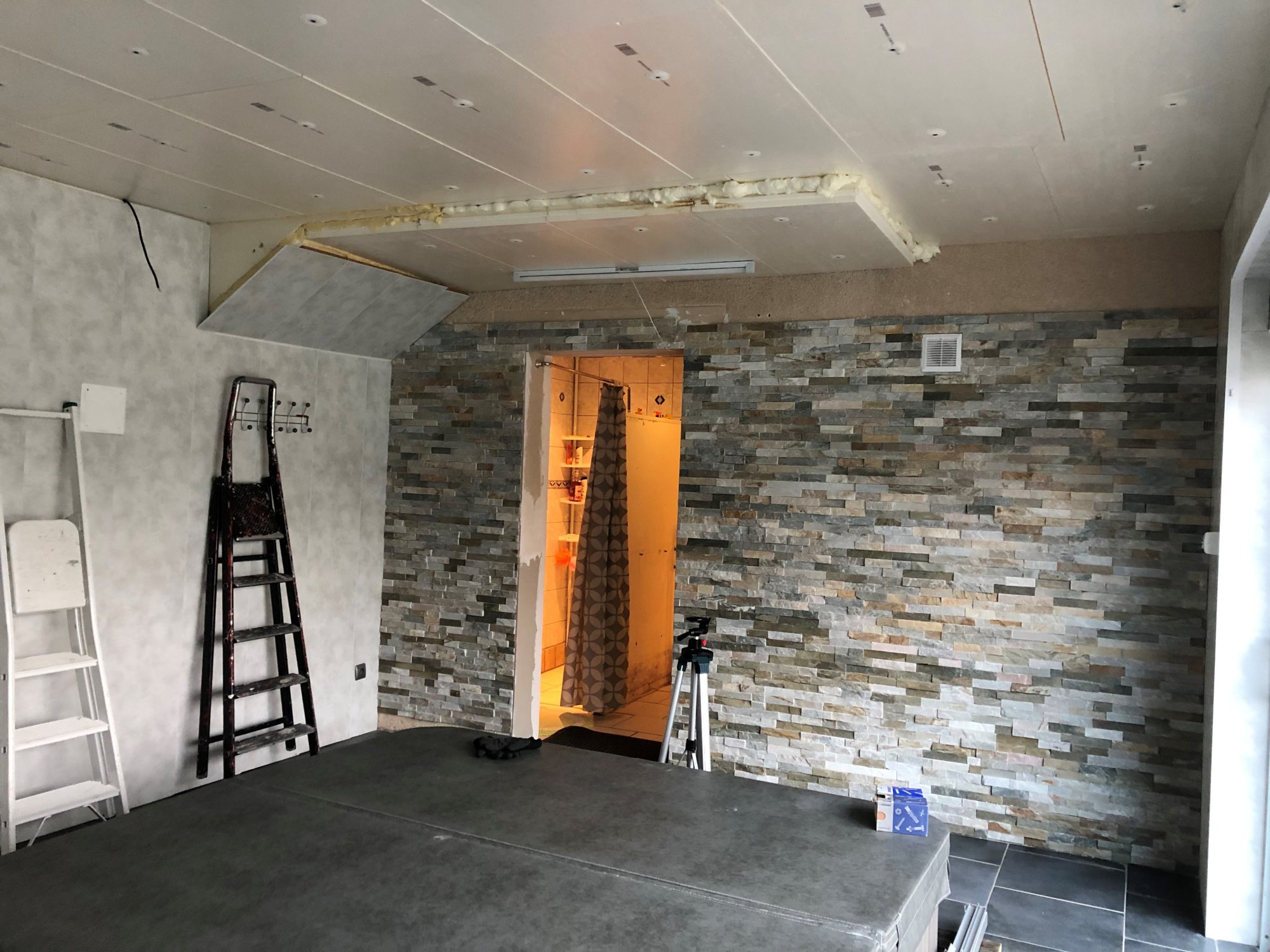Ici dans le 88 (VOSGES) un couple nous a contacter pour s’occuper du plafond de leur espace de bien être. Une pièce totalement rénovée pour accueillir un SPA, petit plaisir qu’ils attendaient de pouvoir s’offrir depuis des années.