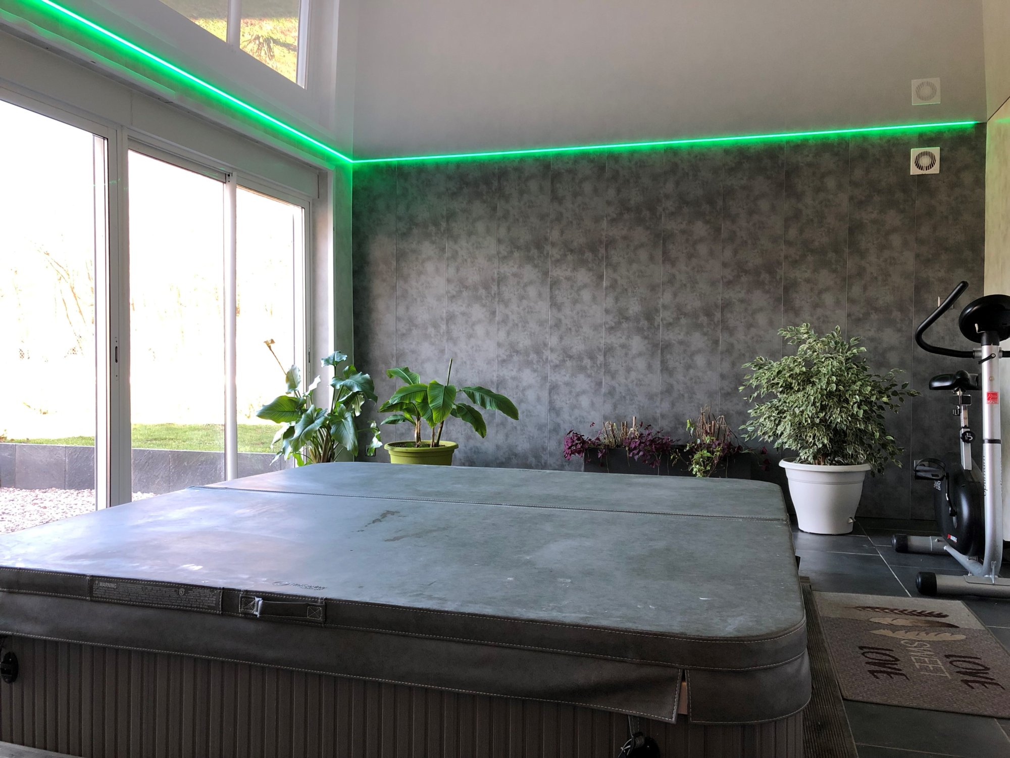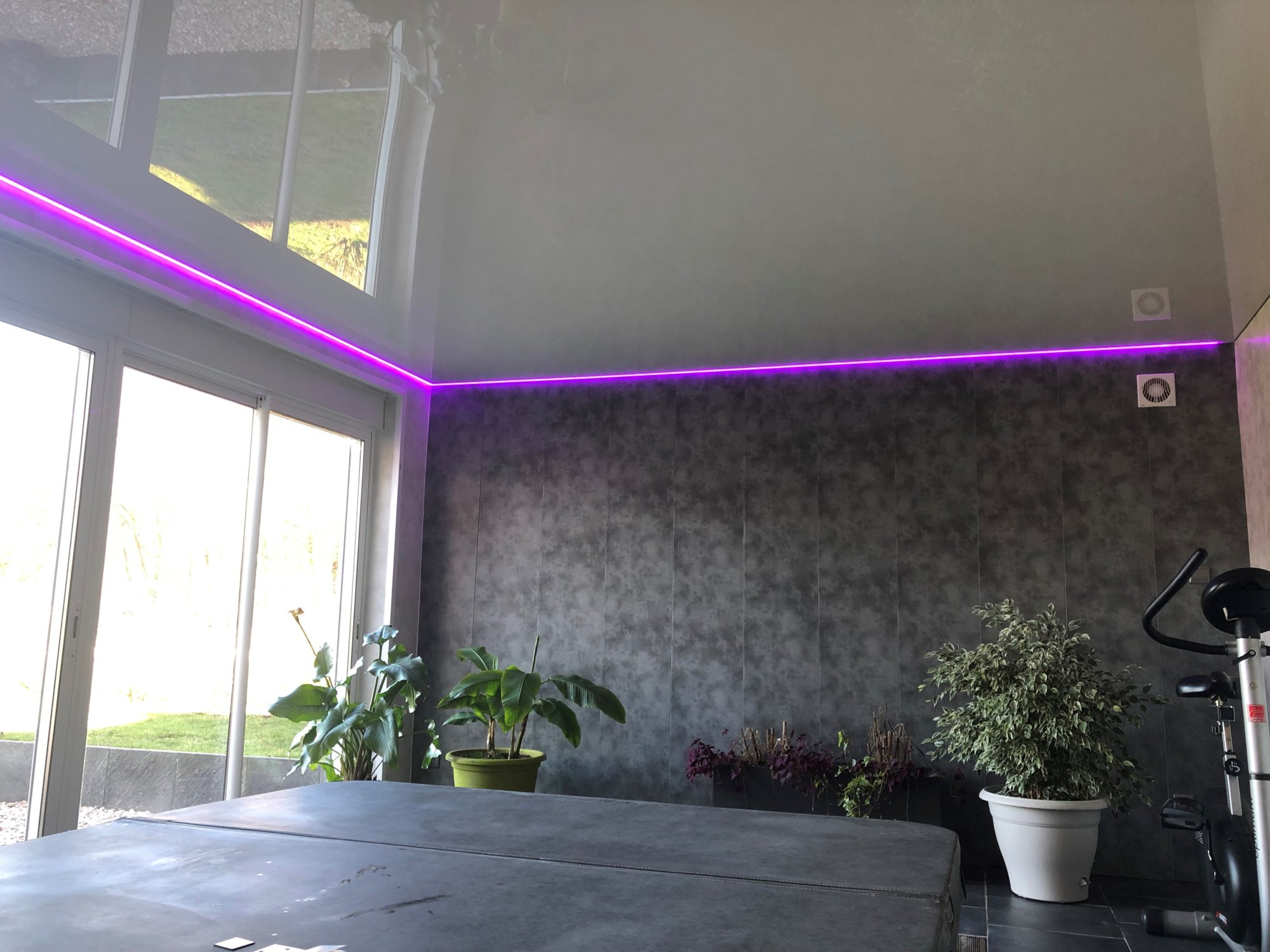 Ils souhaitaient une pièce sobre et élégante qui pouvait devenir festif en un rien de temps. Nous leur avons donc proposé d’installer un profil LED intégrant des rubans de LED RGB afin qu’il puisse, avec leur télécommande jouer sur les couleurs ou encore les programmes d’éclairage.