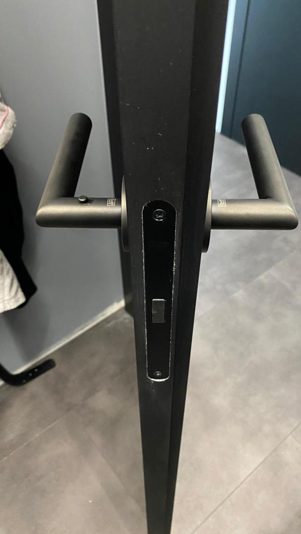 De plus le système « reverse » permettant d’ouvrir la porte vers l’intérieur même si elle est affleurante au mur opposé nous a permis d’aligner toute les portes coté couloir même si l’une d’entre elle s’ouvre vers l’intérieur de la pièce. Un vrai plus esthétique