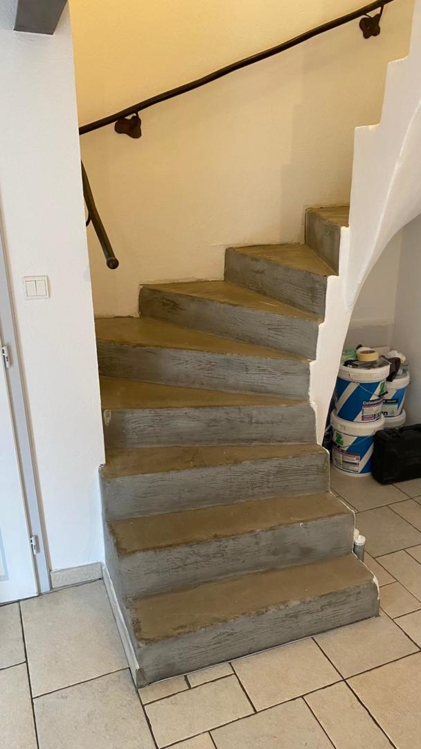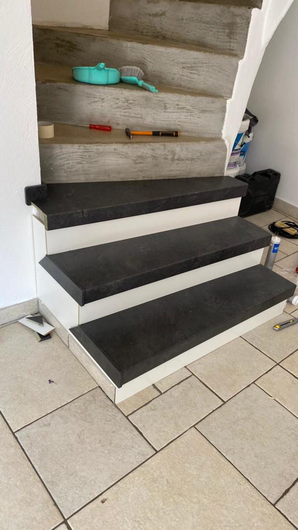 Il aura fallu deux jours et demi pour effectuer l’habillage de cet escalier, sachant que pendant la réalisation du chantier, après 20 minutes de séchage il est possible de marcher sur celle-ci, ce qui veut dire que nous n’avons pas bloqué l’accès à l’étage de nos clients pendant toute la durée du chantier.